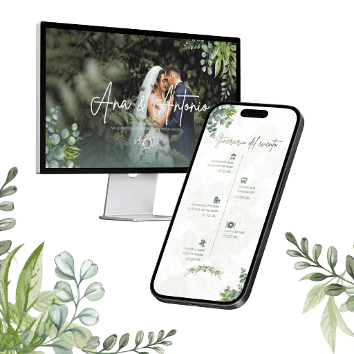 Es una aplicación web interactiva y se accede por internet. Incluye todos los detalles de tu evento y funciones útiles como confirmación de asistencia, ubicación en mapa, lista de invitados, etc